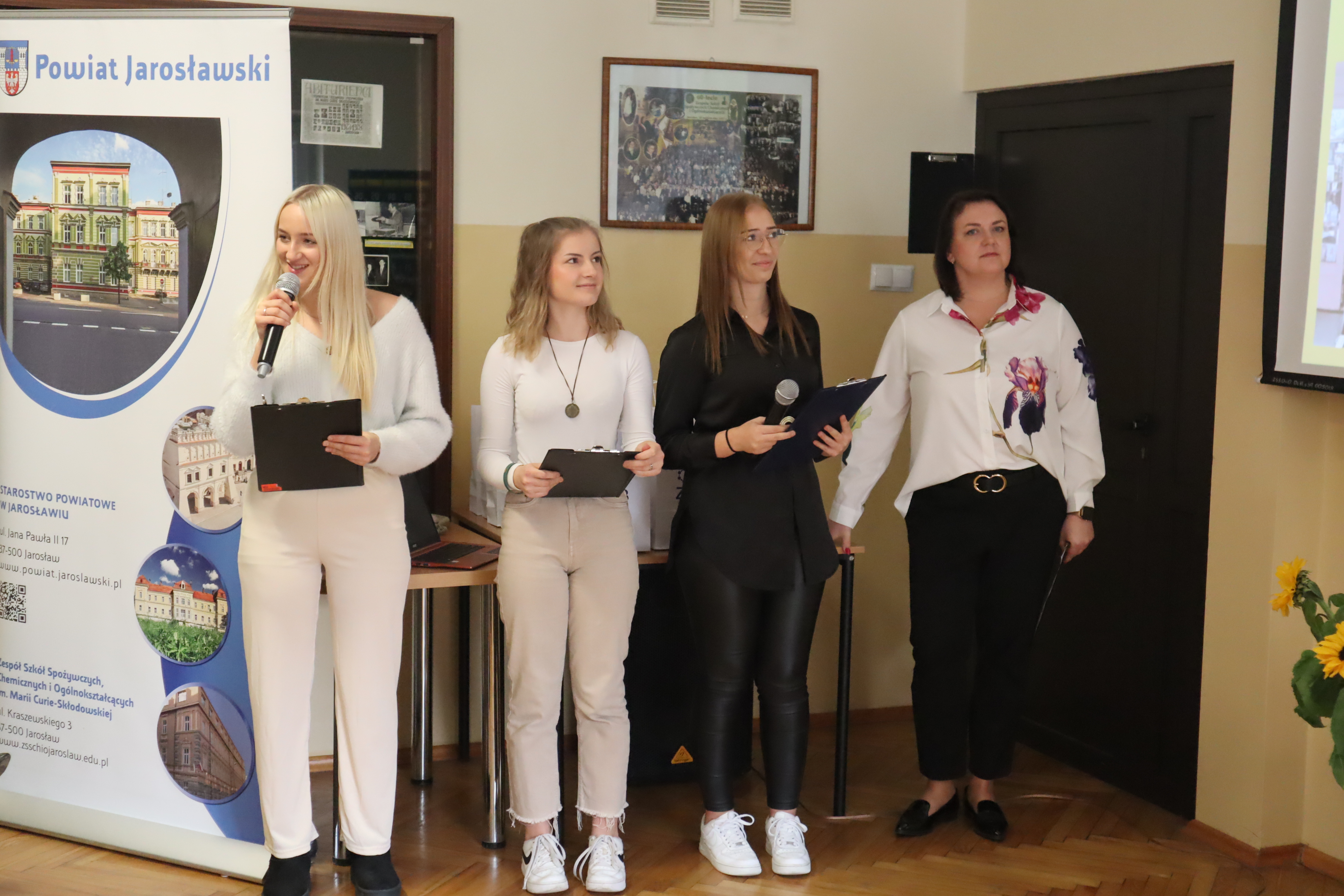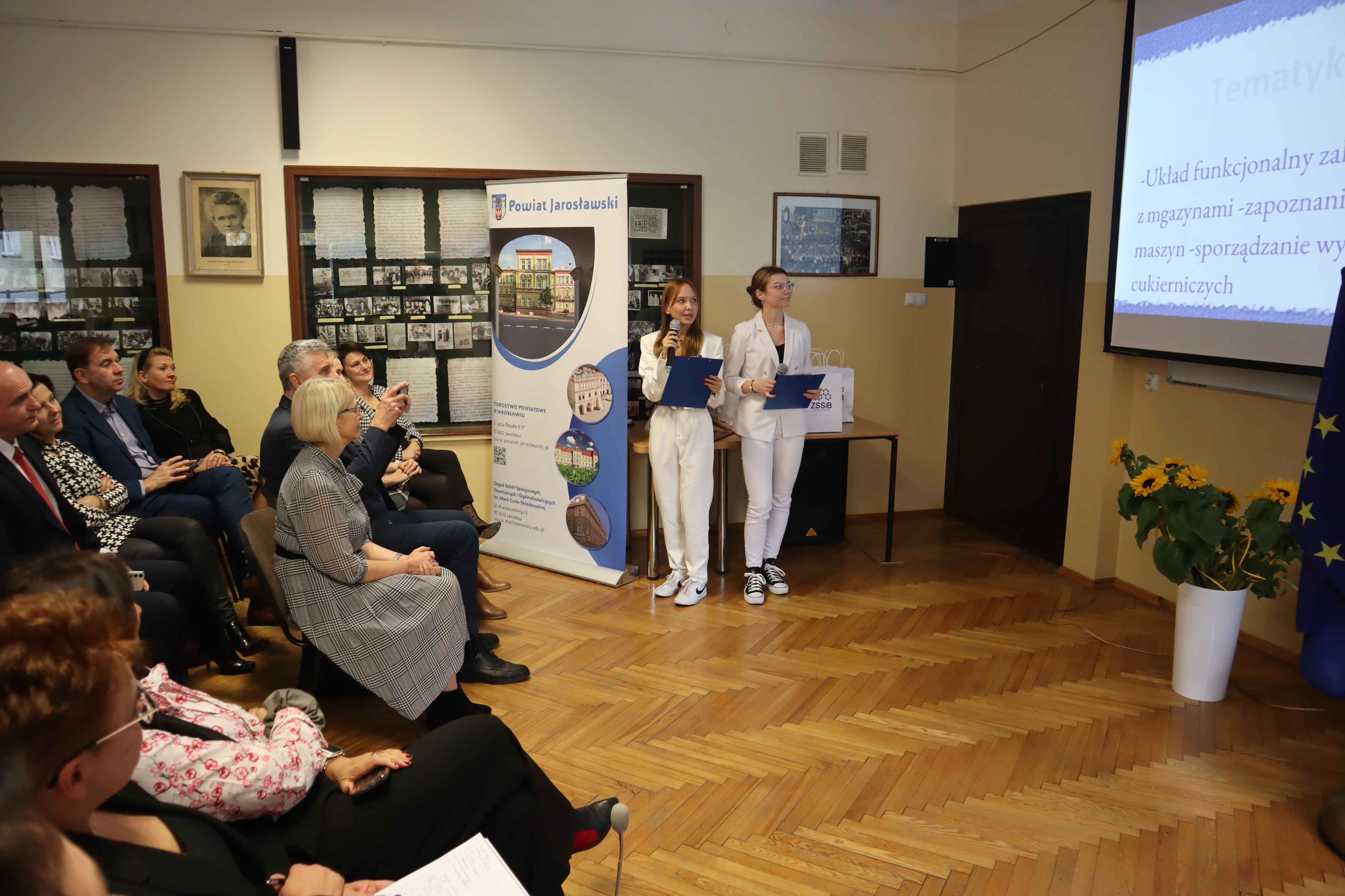 Wśród zaproszonych gości znaleźli się m.in.: członek Zarządu Powiatu Jarosławskiego Andrzej Wyczawski, p.o. naczelnika Wydziału Edukacji i Spraw Społecznych Anna Petynia i skarbnik powiatu Agnieszka Mroczka. Obecni byli także: przedstawiciele szkół i placówek oświatowych, rodzice uczestników projektu oraz kadra i pracownicy Zespołu Szkół Spożywczych i Biznesowych w Jarosławiu.