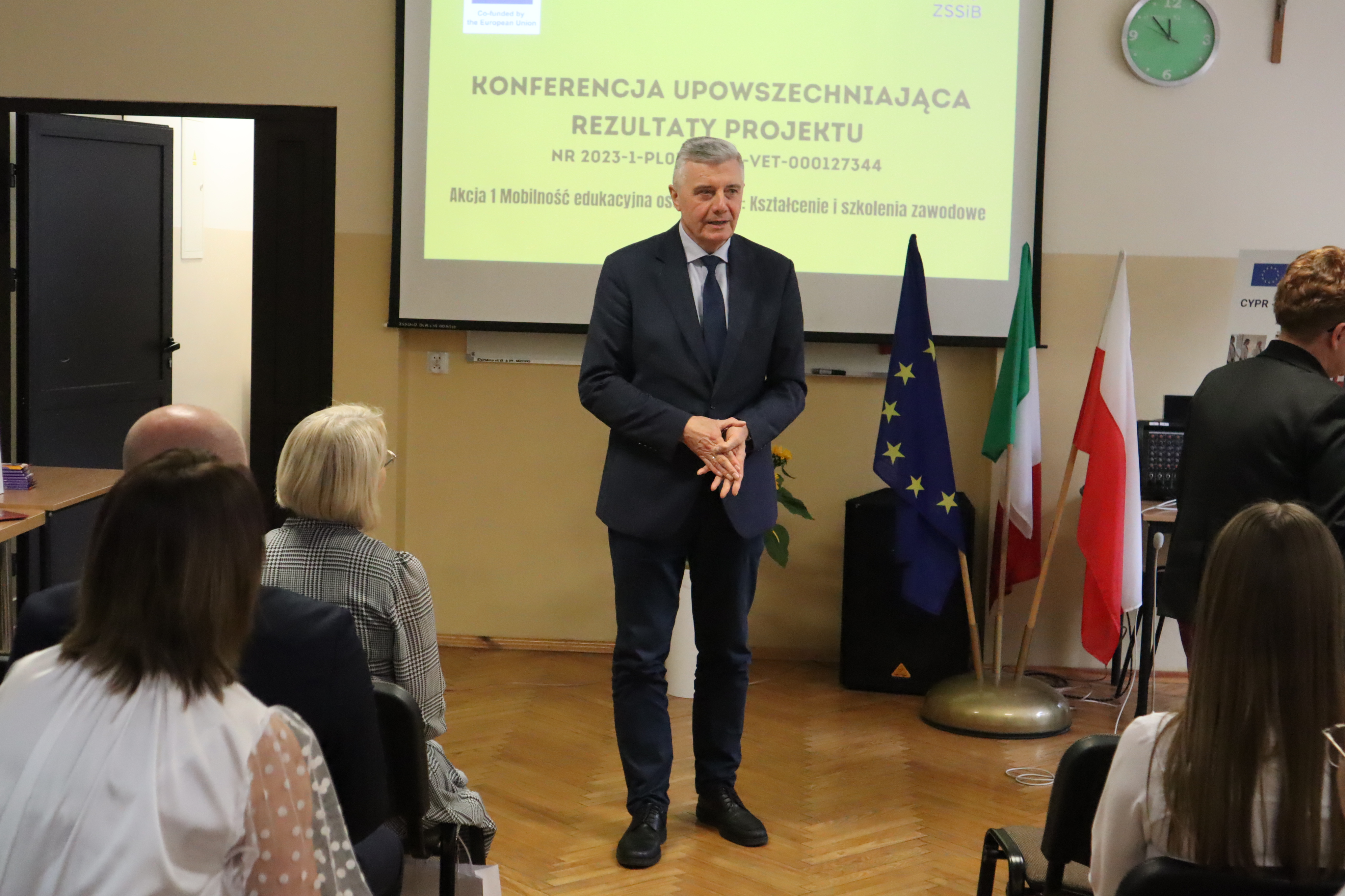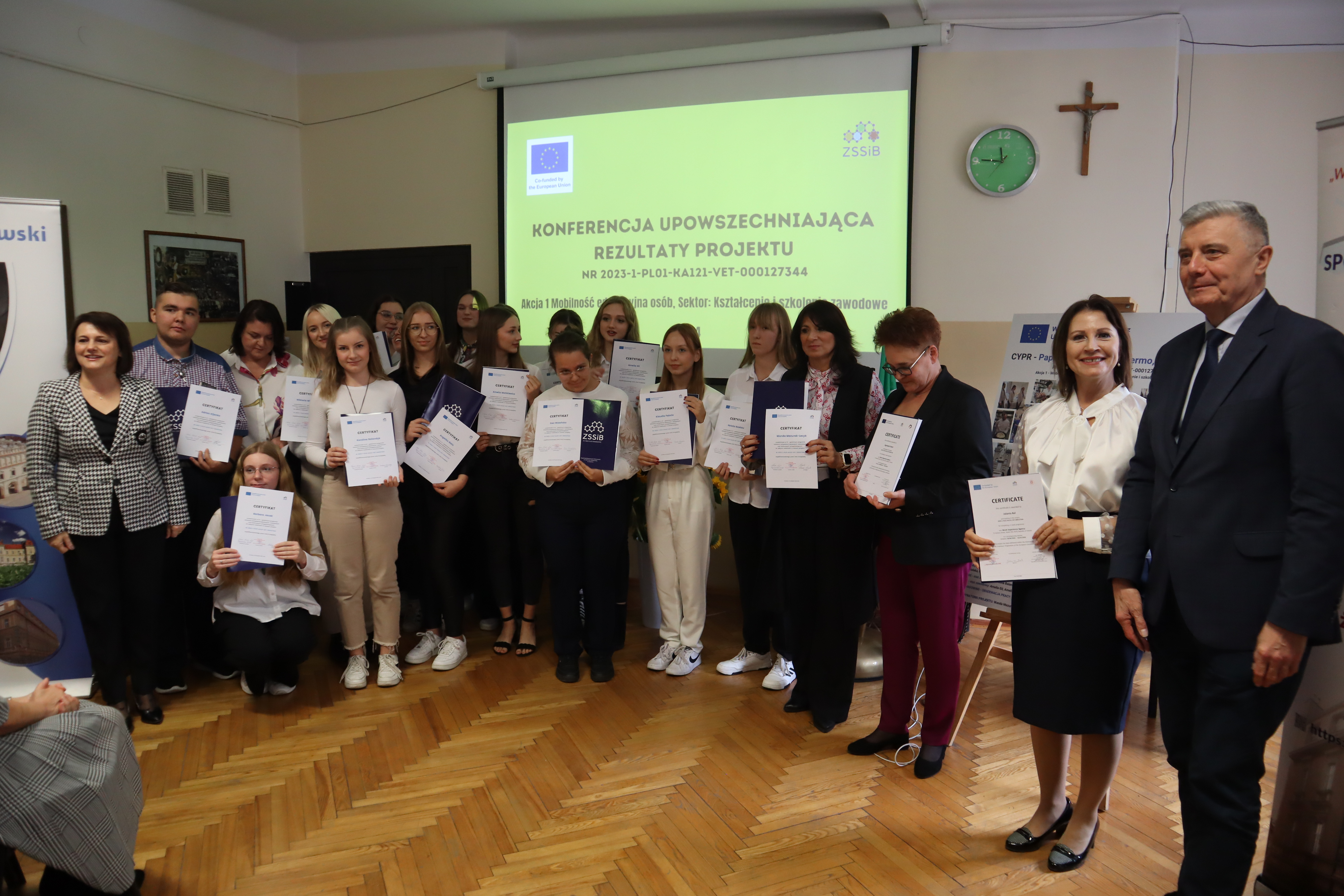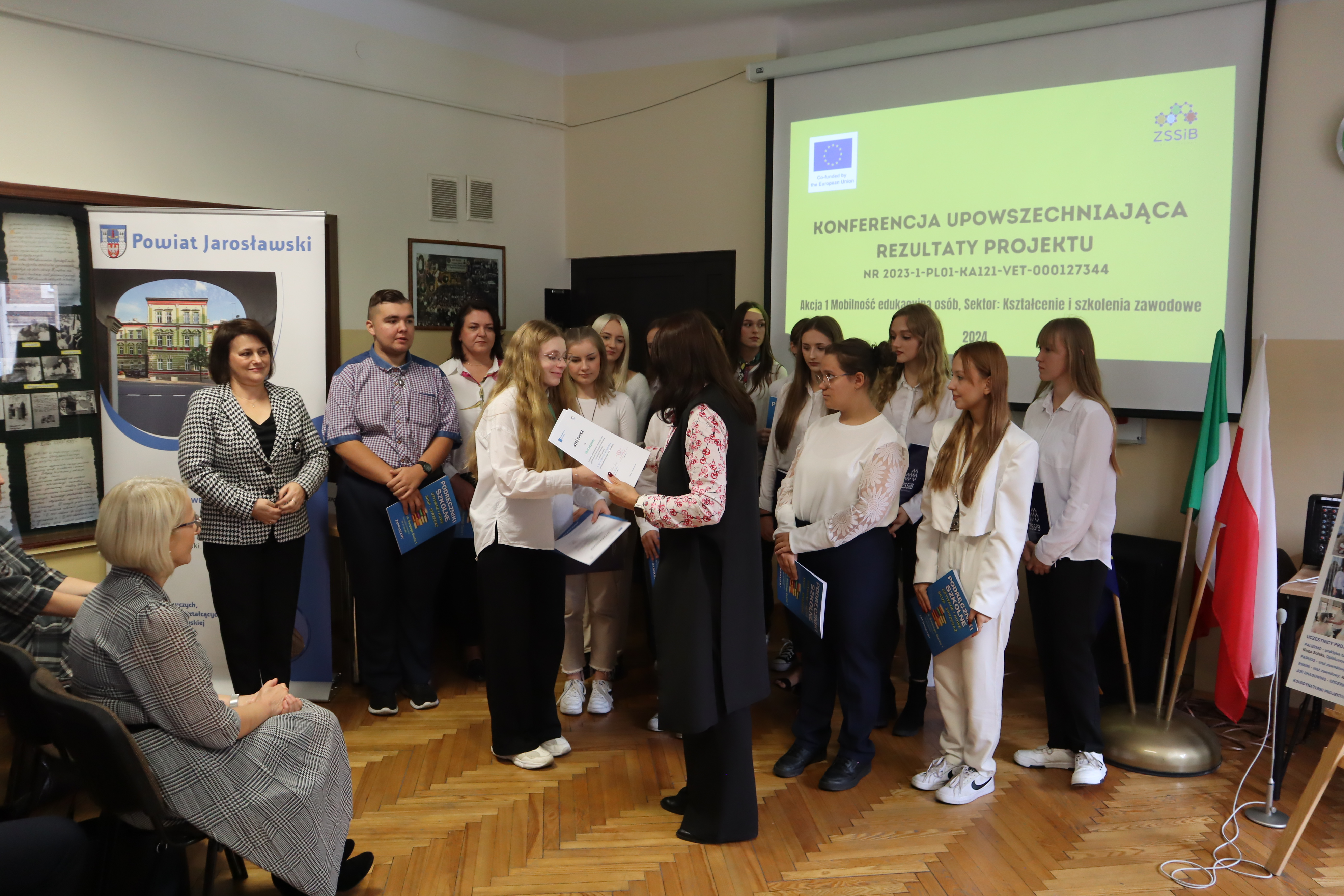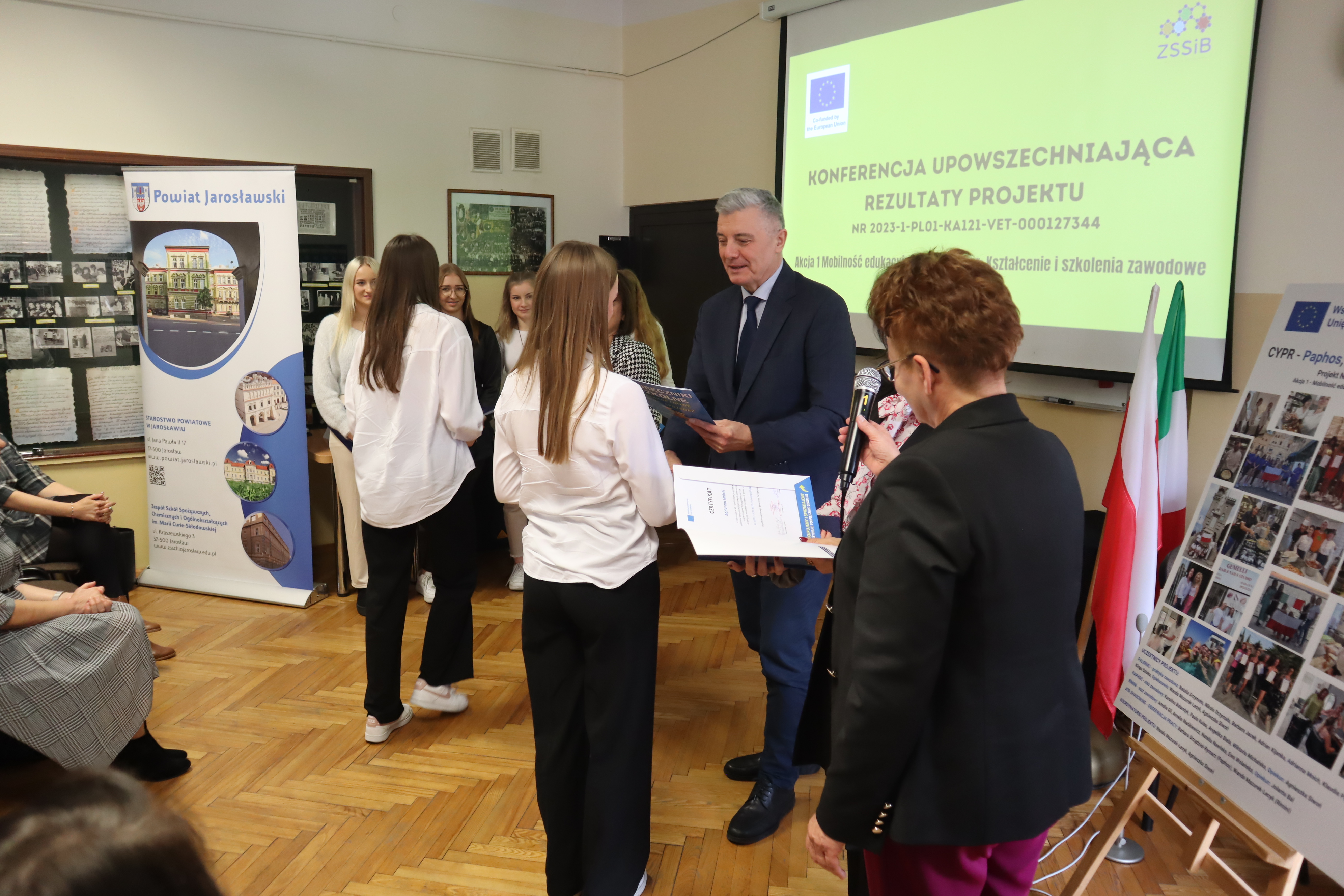 30 października 2024 r. w Zespole Szkół Spożywczych i Biznesowych w Jarosławiu odbyła się konferencja upowszechniająca rezultaty projektu nr 2023-1-PL01-KA121-VET-000127344 współfinansowanego przez Unię Europejską, który realizowany jest przez naszą placówkę w ramach posiadanej akredytacji od 1 czerwca 2024 r.