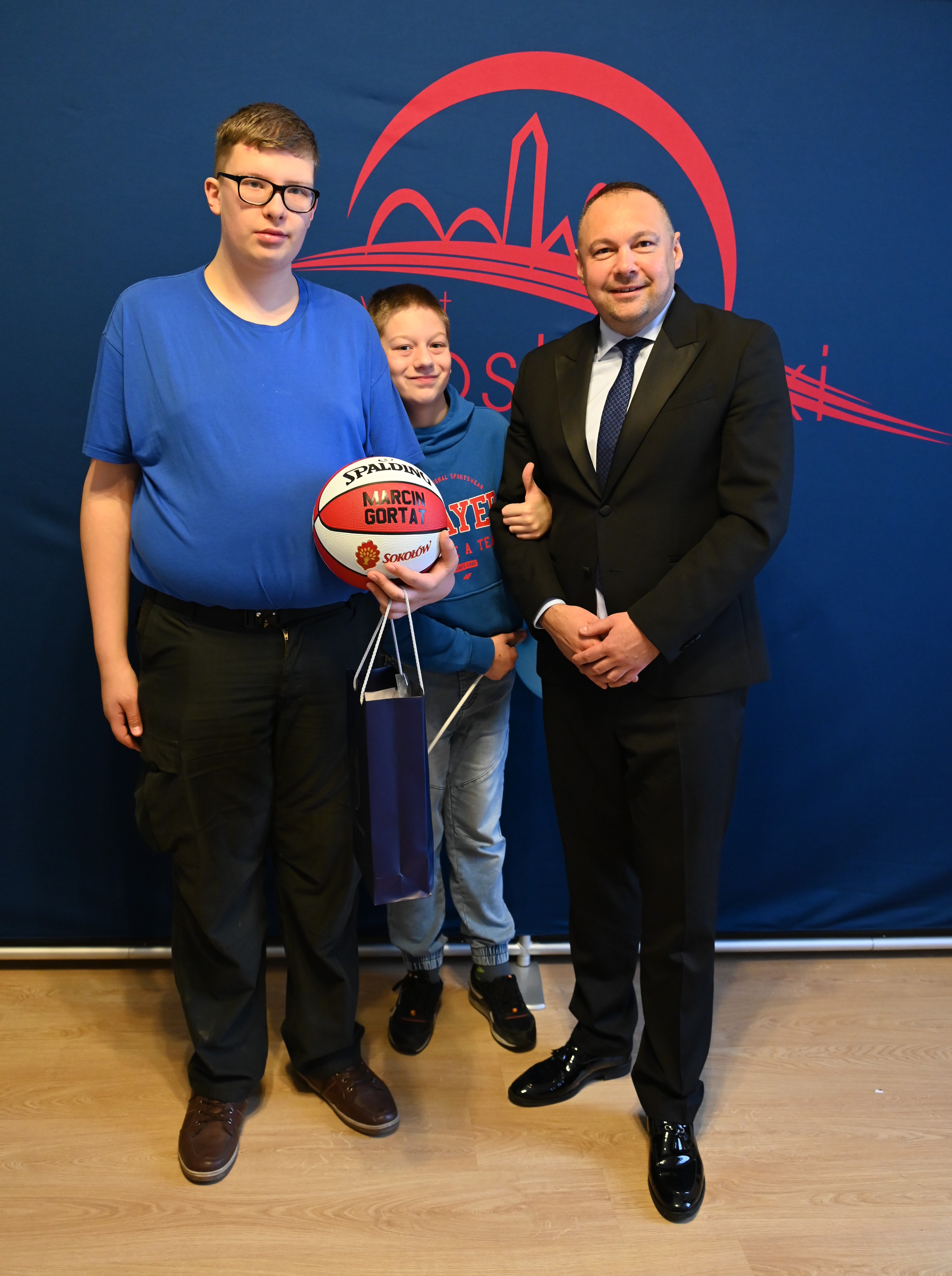 Maluchy wniosły do urzędu ogromną dawkę radości, uśmiechu i pozytywnej energii.  Spotkanie było nadzwyczaj wyjątkowe, gdyż dzisiaj swoje 17. urodziny obchodzi Karol, wychowanek naszego ośrodka.  Z tej okazji wspólnie zaśpiewaliśmy mu „Sto lat” i złożyliśmy Karolowi najserdeczniejsze życzenia. Starosta jarosławski wręczył solenizantowi wyjątkowy prezent m.in. piłkę do koszykówki z podpisem Marcina Gortata.