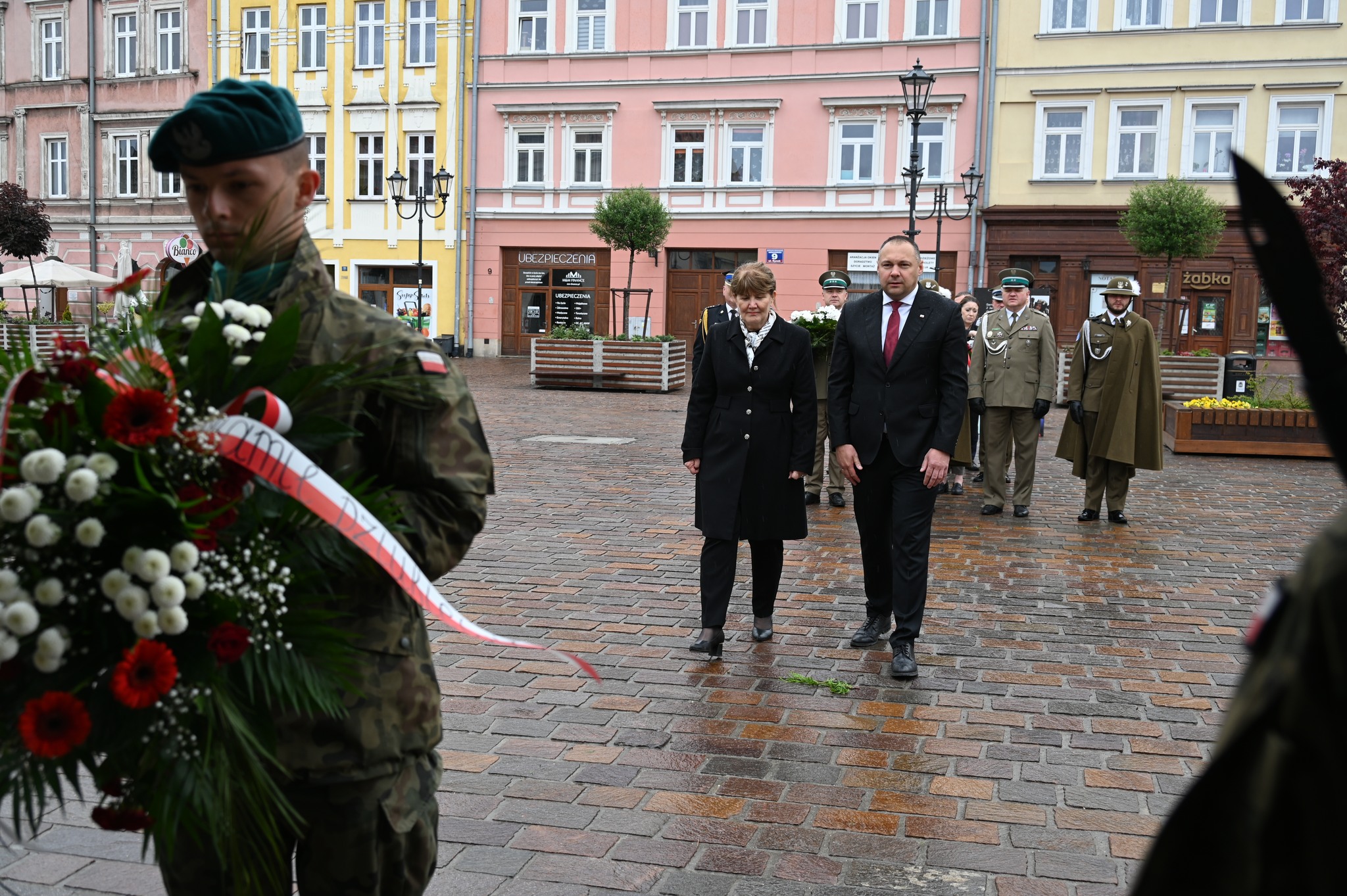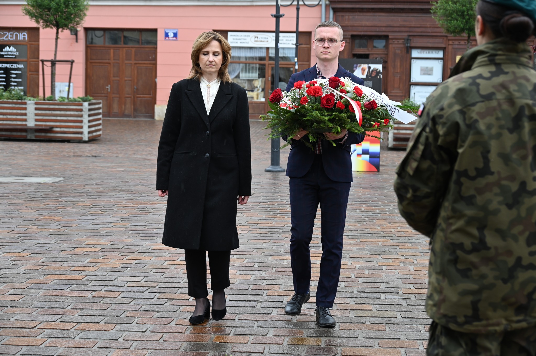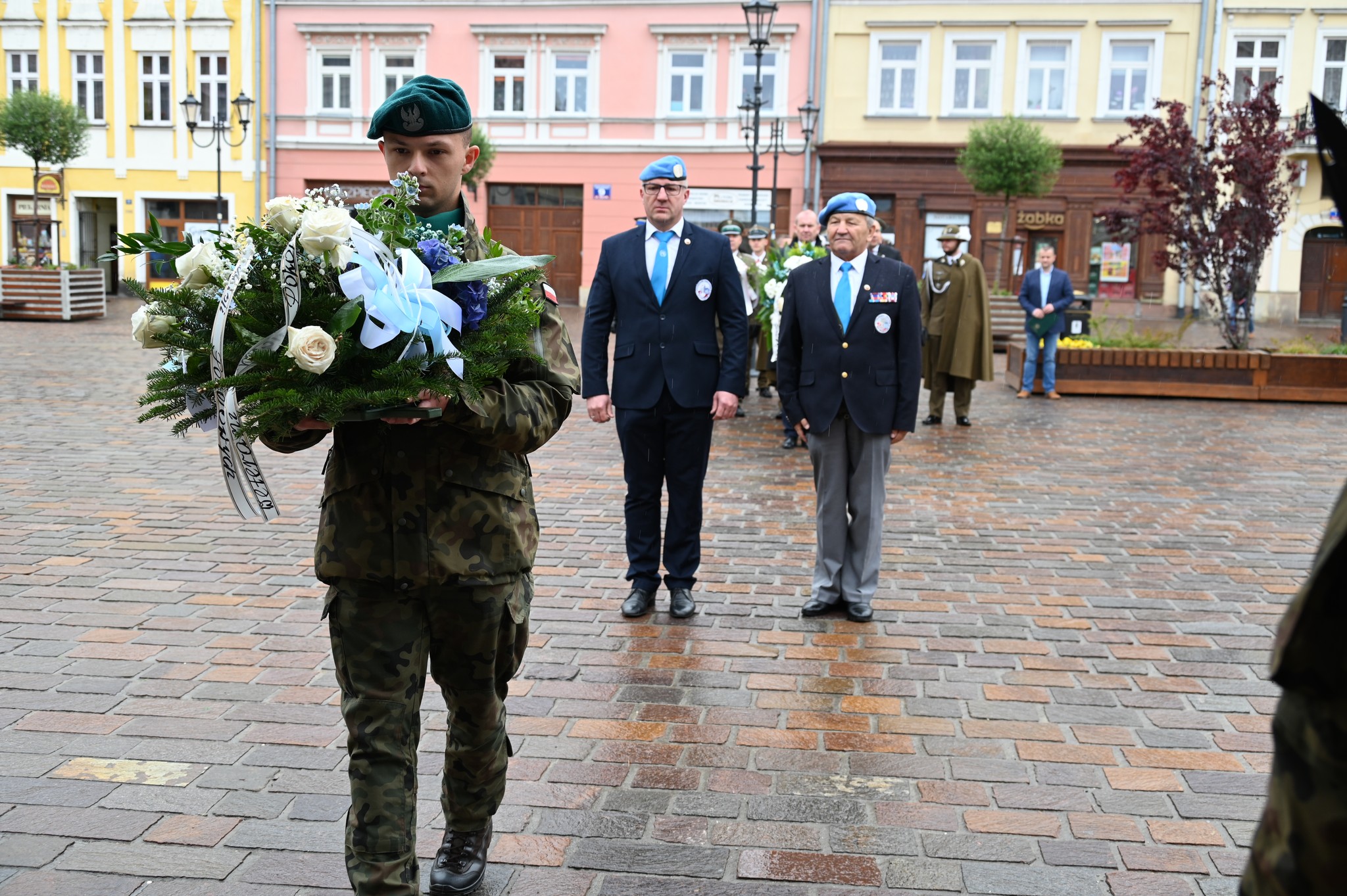 Uroczystość złożenia wiązanek kwiatów odbyła się przed tablicą pamiątkową, upamiętniającą żołnierzy Garnizonu Jarosław, którzy brali udział w misjach pokojowych na całym świecie.