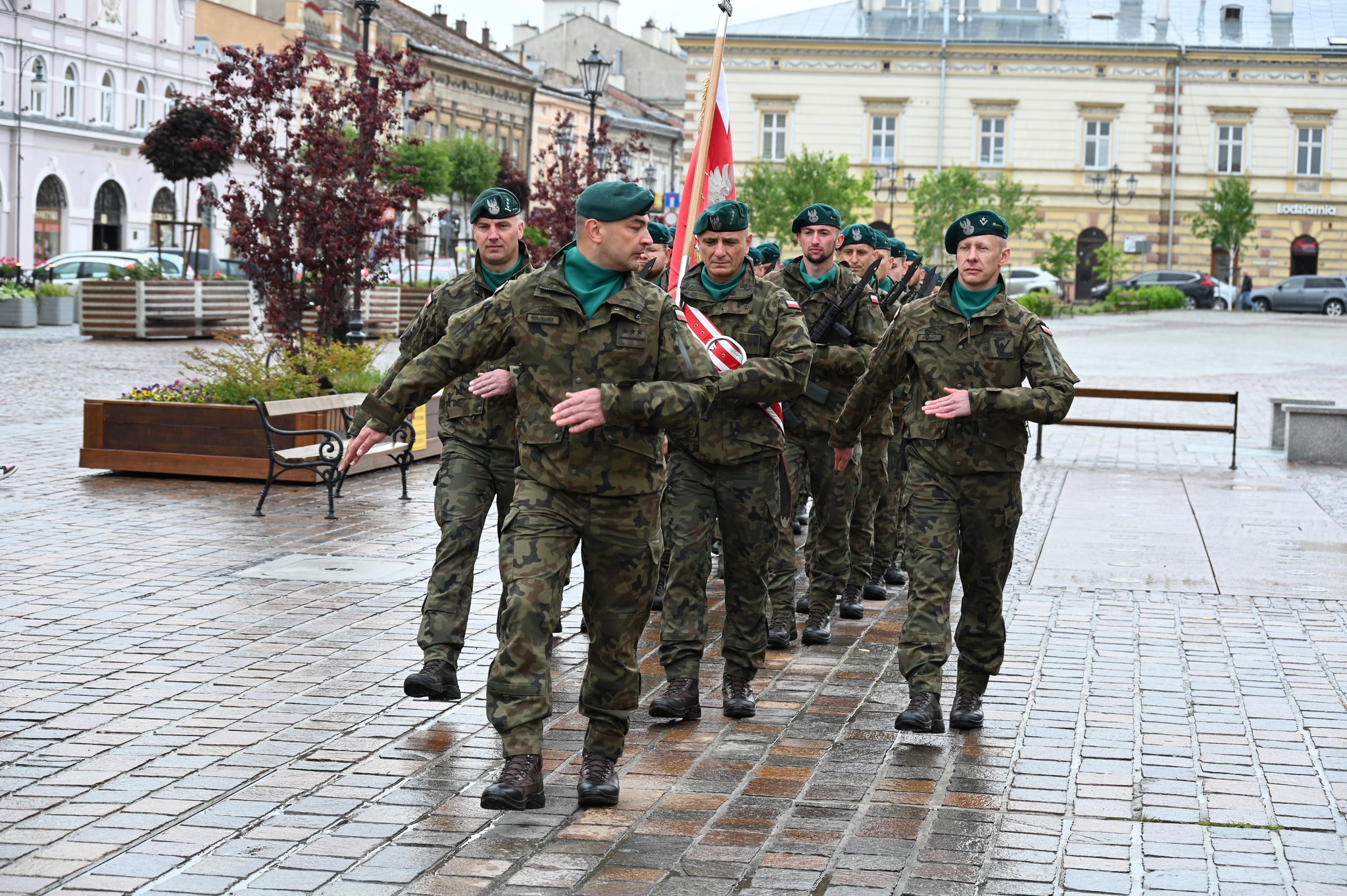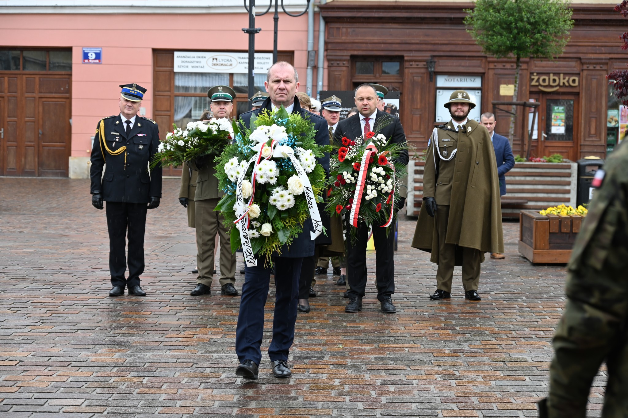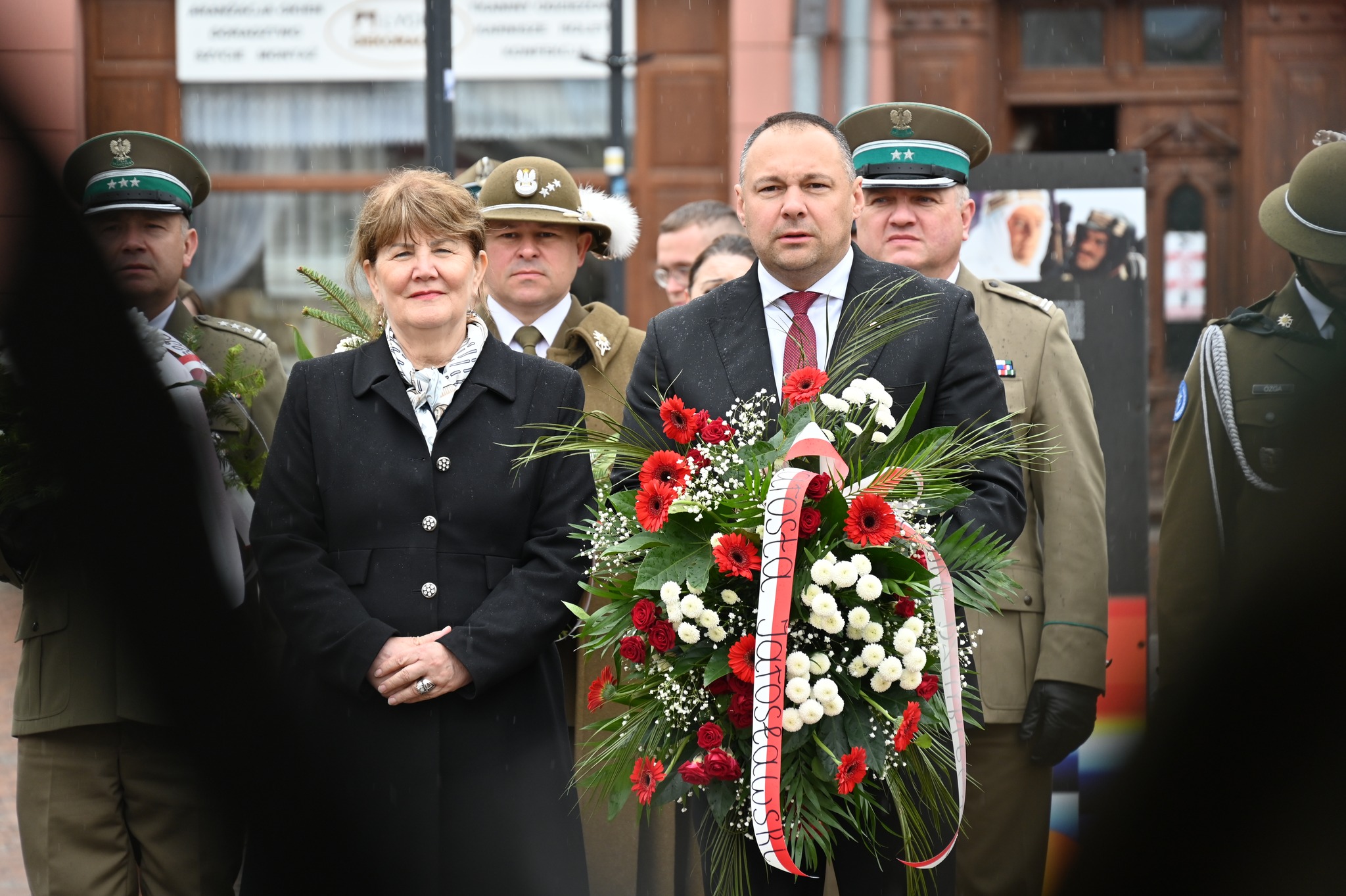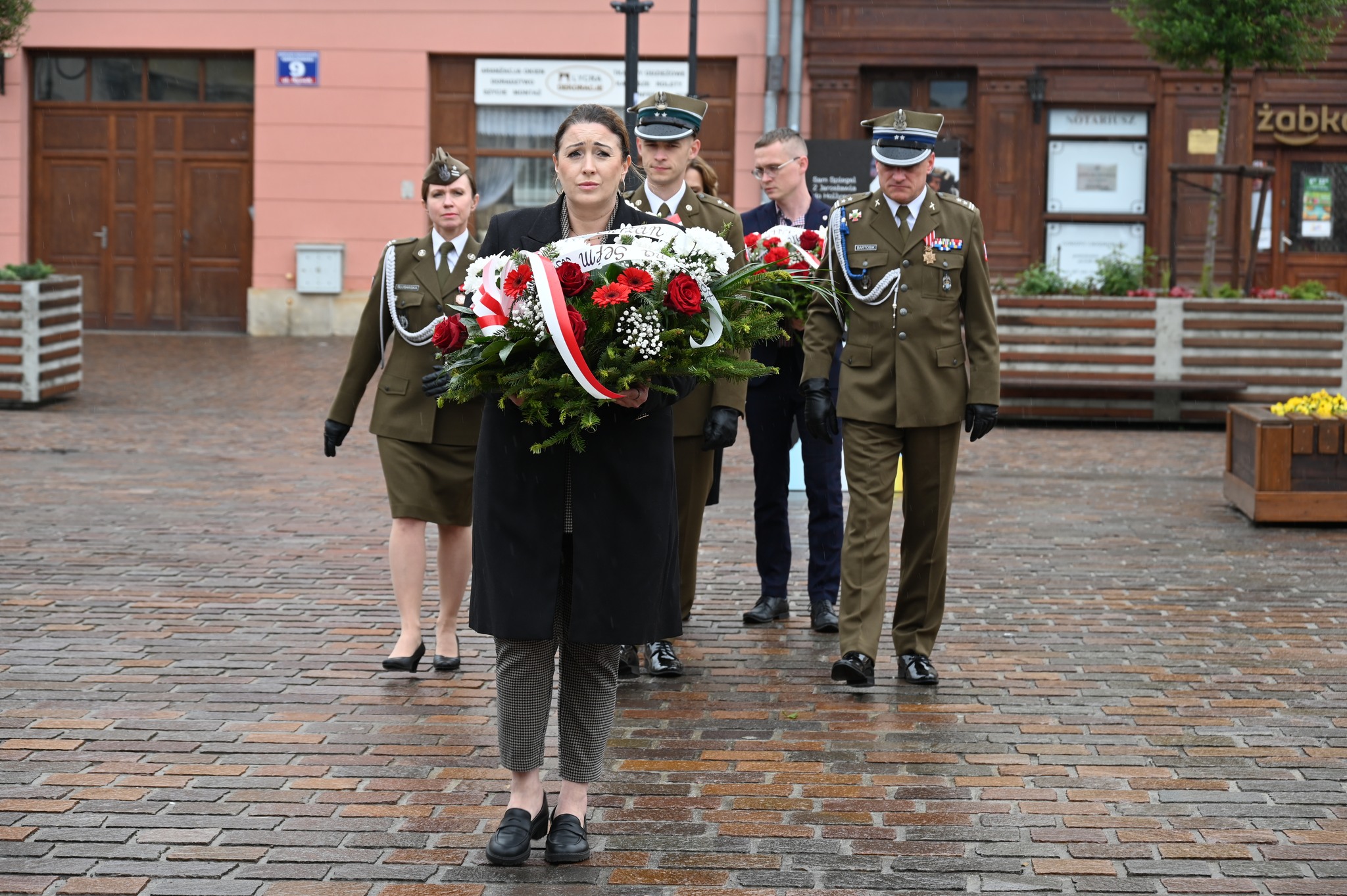 Uroczystość złożenia wiązanek kwiatów odbyła się przed tablicą pamiątkową, upamiętniającą żołnierzy Garnizonu Jarosław, którzy brali udział w misjach pokojowych na całym świecie.