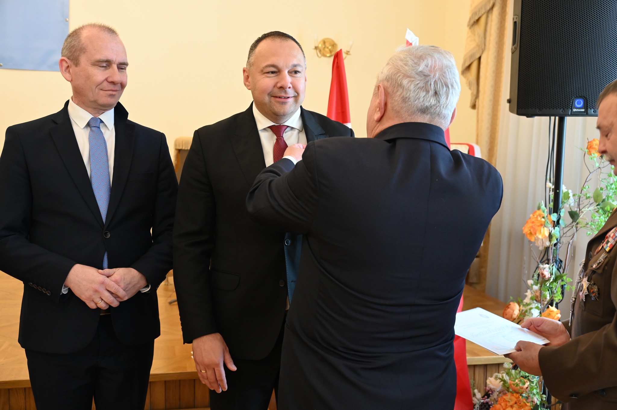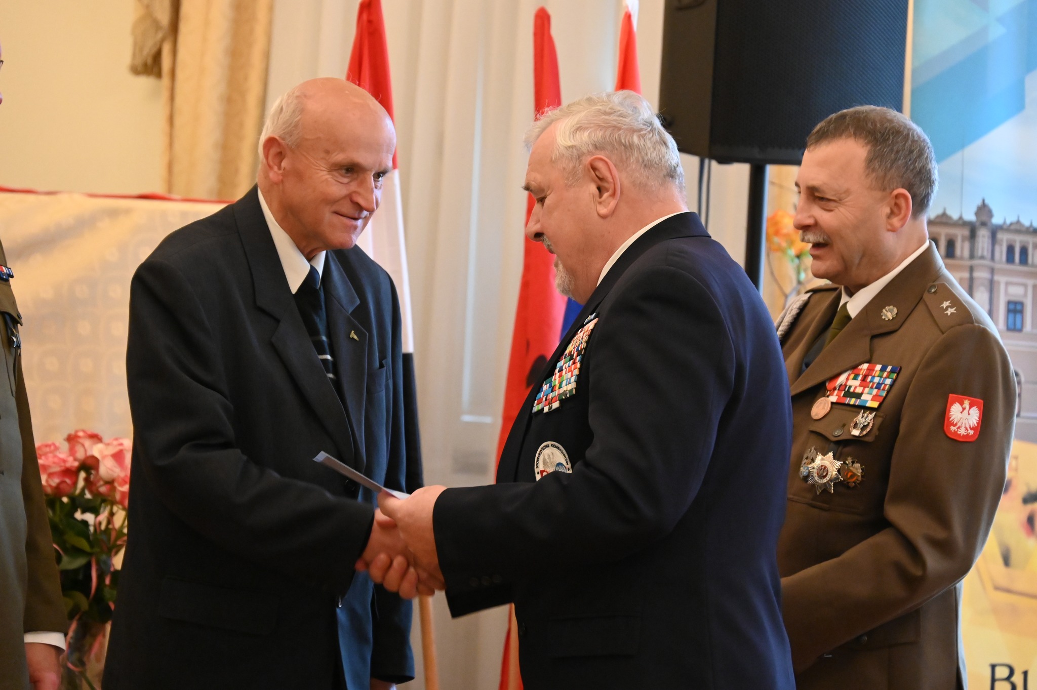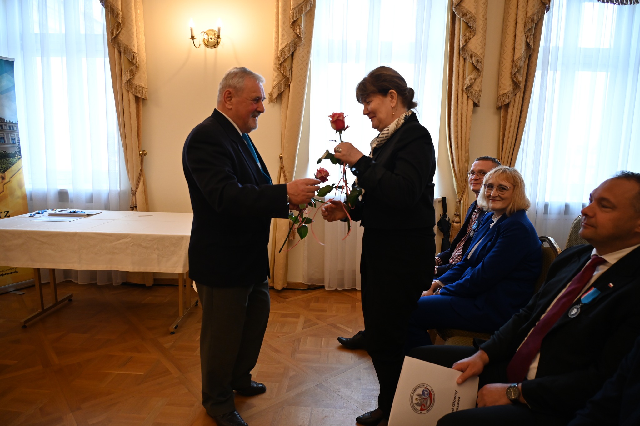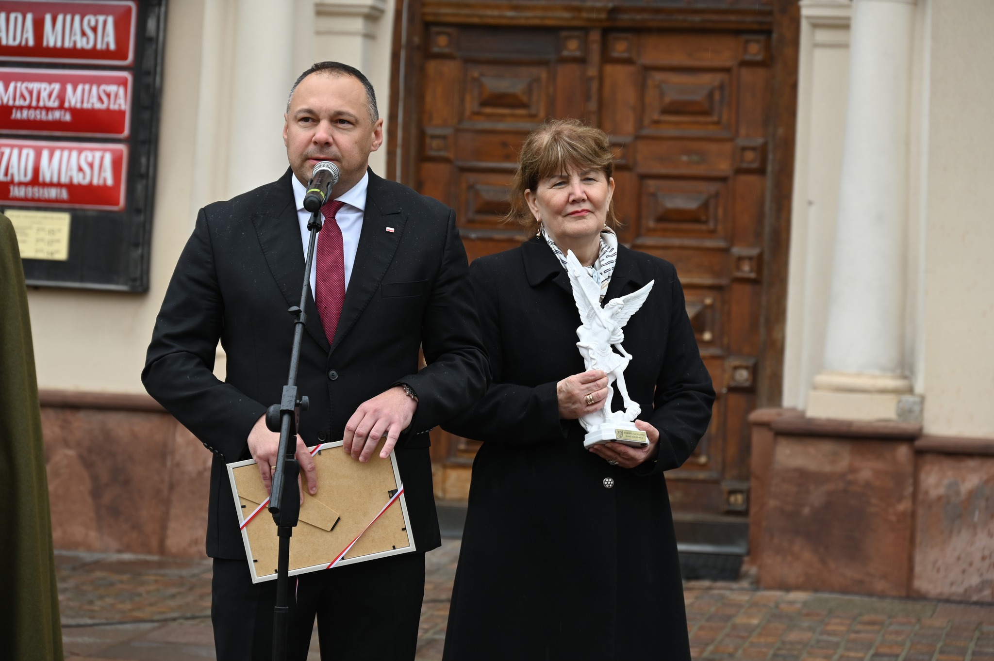 Zbigniew Broś odebrał z rąk włodarza oraz przewodniczącej Rady Powiatu Jarosławskiego Grażyny Strzelec gratulacje oraz rzeźbę św. Michała Archanioła – patrona powiatu jarosławskiego – jako symboliczny wyraz uznania i wsparcia dla wszystkich weteranów.