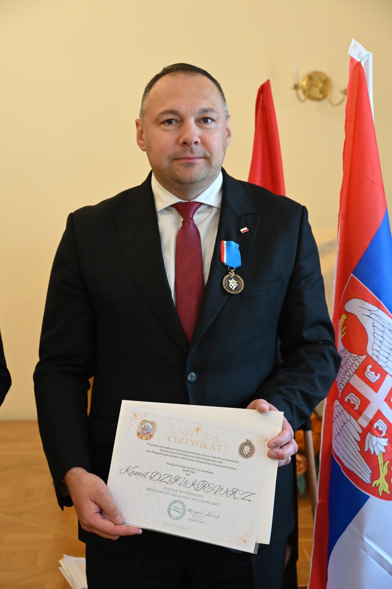 Podczas przemówienia starosta jarosławski Kamil Dziukiewicz wyraził wdzięczność wszystkim osobom pełniącym służbę na rzecz pokoju i bezpieczeństwa międzynarodowego: