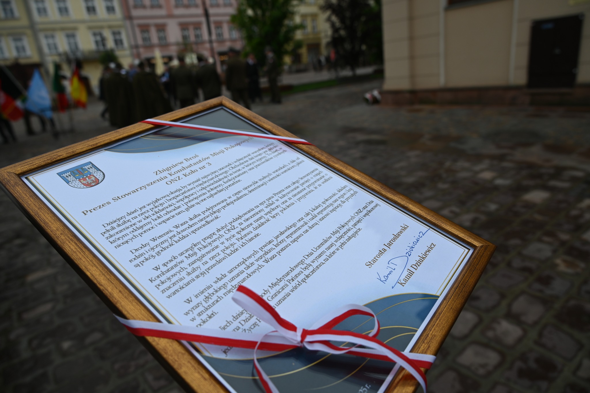 24 maja br. na jarosławskim rynku odbyły się uroczyste obchody Międzynarodowego Dnia Uczestników Misji Pokojowych Organizacji Narodów Zjednoczonych oraz Dnia Weterana Działań poza Granicami Państwa. Wydarzenie odbywało się pod honorowym patronatem starosty jarosławskiego Kamila Dziukiewicza.