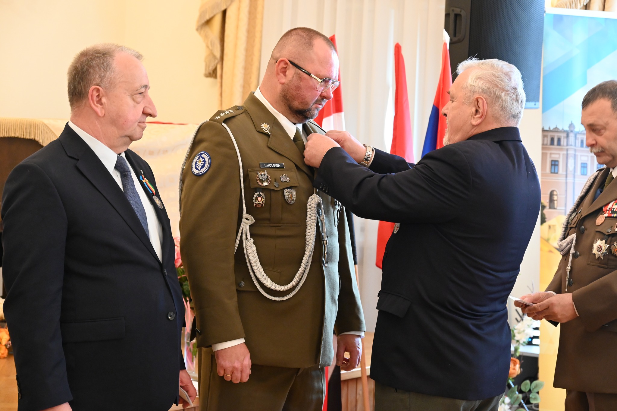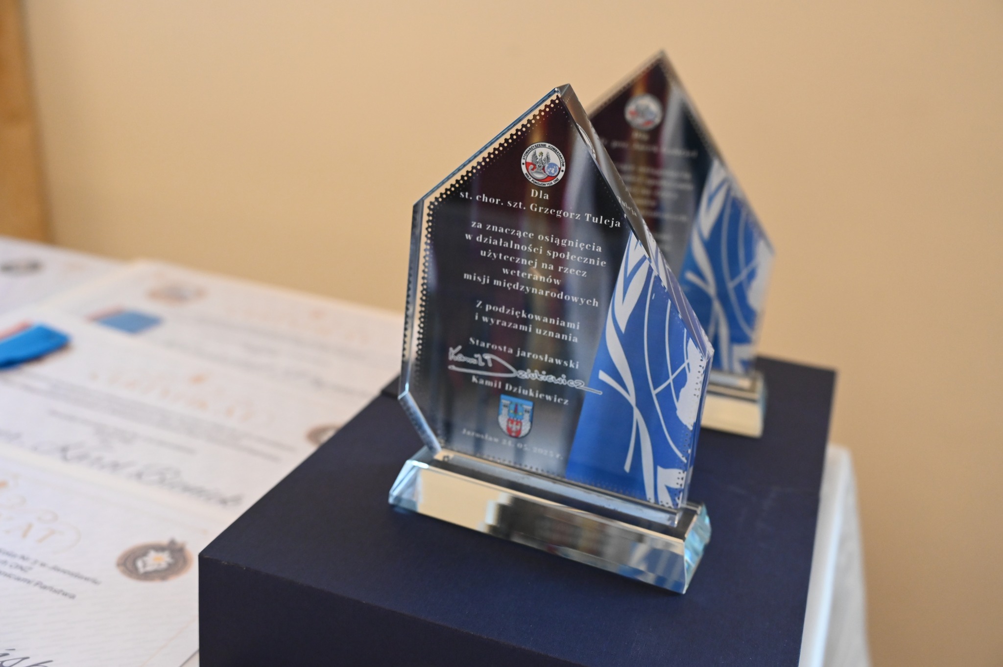 Włodarz powiatu przyznał również okolicznościowe statuetki osobom szczególnie zaangażowanym w działalność na rzecz weteranów oraz mieszkańców naszego regionu. Wyróżnieni zostali: Grzegorz Tuleja oraz Jacek Gabriel – za aktywną działalność na rzecz weteranów i społeczności powiatu jarosławskiego.