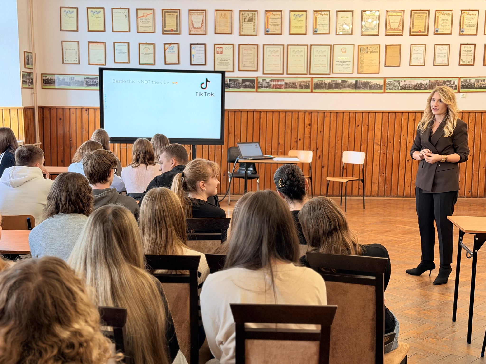 W trakcie przerwy konkursowej uczniowie wzięli udział w inspirujących warsztatach prowadzonych przez dr Judytę Pawliszko pt. „Bro, AI Has No Vibe (in translation)”